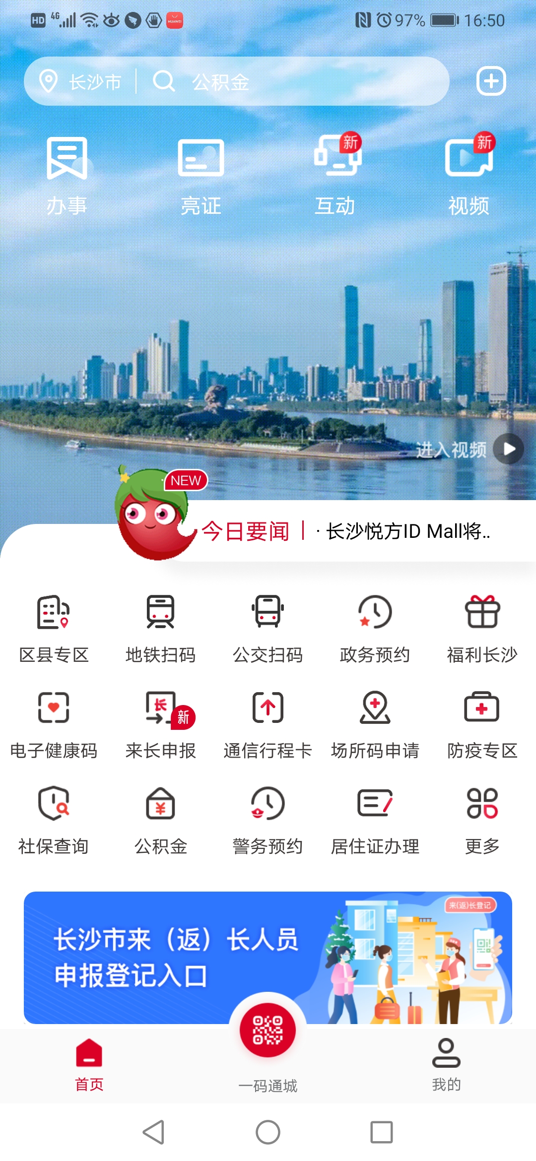 新用戶掃碼下載“我的長沙”APP并完成實名注冊(老用戶可跳過此步驟)。